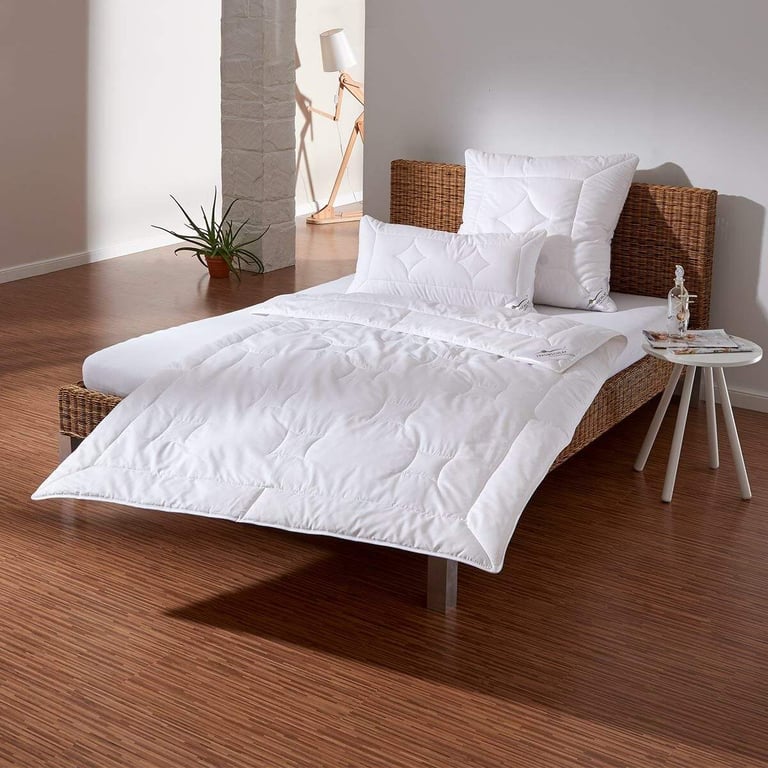 Zusammen sind sie unschlagbar Zusammen verarbeitet ergibt sich ein wunderbar leichtes und dennoch superbauschiges Vlies. Der seidige Premium-Satin aus 100% Baumwolle als Bezugstoff rundet dieses Programm ab. Durch die Mischung der komplett unterschiedlichen Materialien erfolgt ein Funktionsausgleich: Was die eine Füllung nicht vermag, leistet die andere umso besser. Hier haben wir eine Hybridlösung für Bettwaren geschaffen die einzigartig ist.